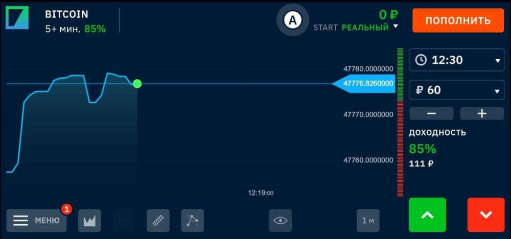 Помимо этого, из главного окна доступен функционал пополнения счета отдельной кнопкой, расположенной в верхней правой части интерфейса, а также изменить тип используемого аккаунта — допускается выбирать между реальным и демо счетами.
