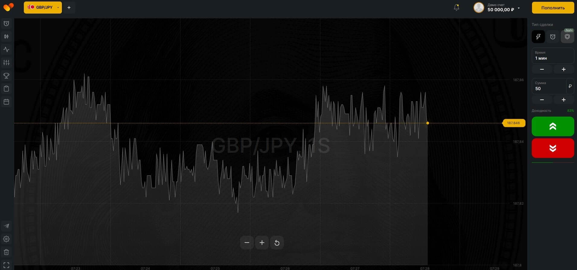 - На главной странице кабинета расположен торговый терминал, где можно отслеживать графики, анализировать изменения на рынке и совершать сделки в реальном времени. Интерфейс разработан для максимального удобства, что позволяет пользователю сосредоточиться на принятии решений.
