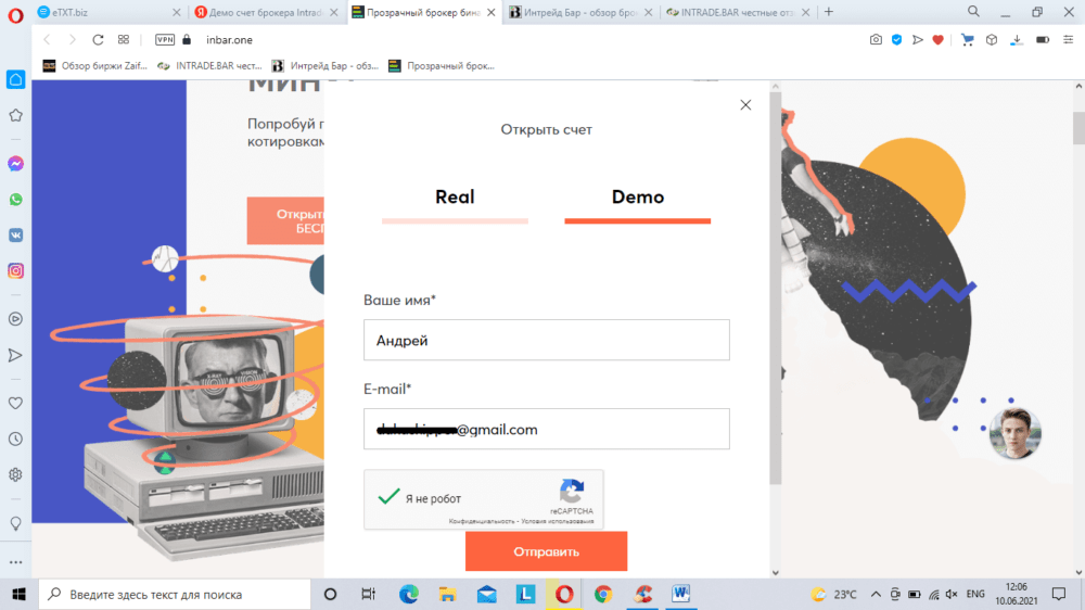 Чтобы открыть демо счет Intrade.Bar, так же как и реальный, на платформе этого опционного брокера следует придерживаться следующего алгоритма из 5 — ти последовательных шагов.