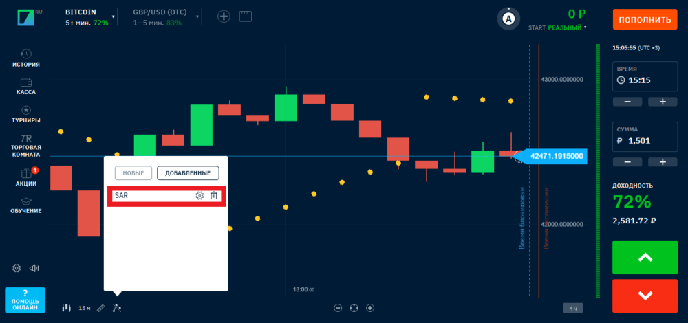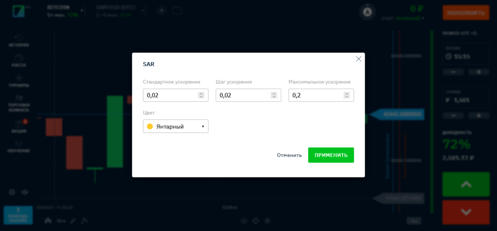 Добавление на график производится простым нажатием по названию. Появляется окно с вводом основных параметров расчета. Для примера добавим SAR на график, оставив параметры по умолчанию.