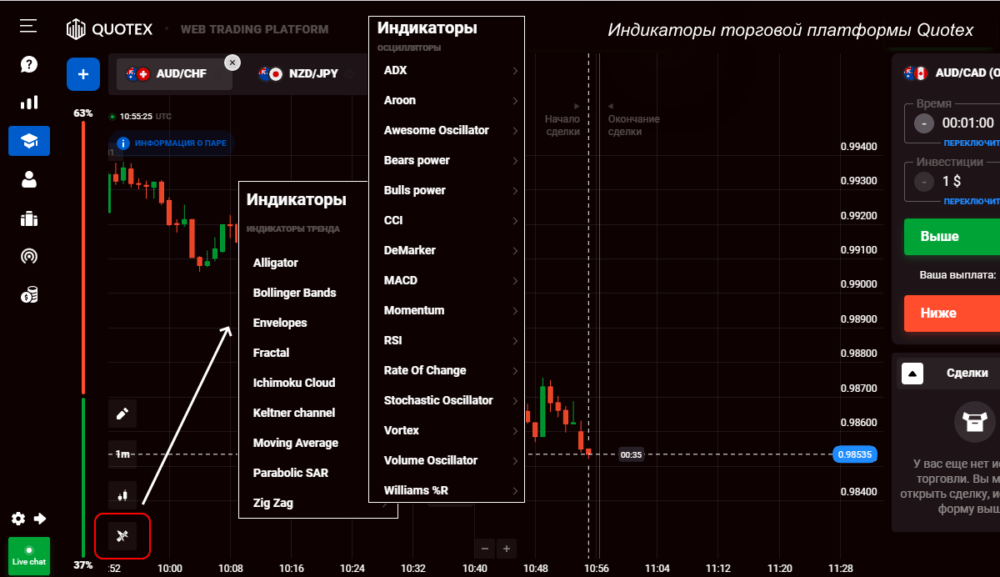 Подробнее о брокере Quotex.io можно узнать, зайдя на официальный сайт, а мы сразу переходим к инструментам: