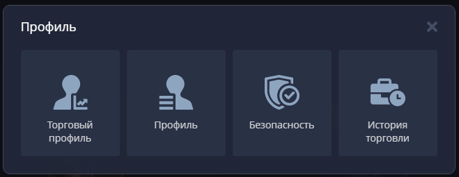 Здесь указываются и редактируются данные владельца, проводится обзор профиля по всем используемым инструментам, настраиваются параметры безопасности, в том числе с использованием сторонних сервисов двухфакторной аутентификации при входе в аккаунт и проведении финансовых транзакций.