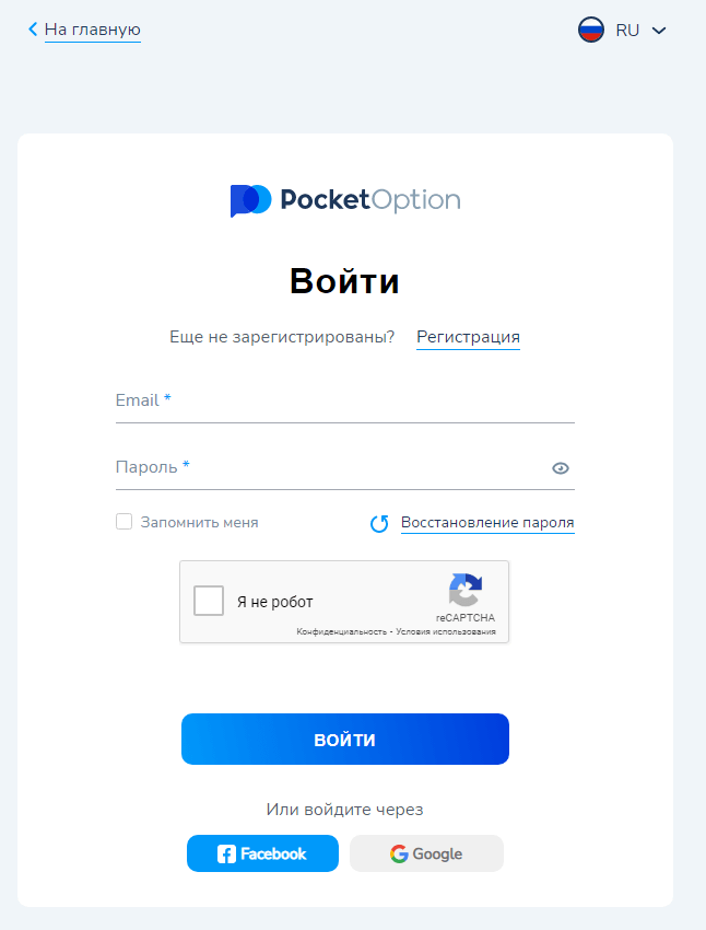 Перейти на официальный сайт Pocket Option