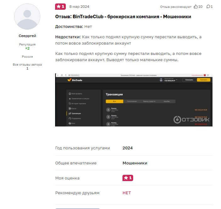 Отрицательные свежие отзывы реальных людей о Bintrade