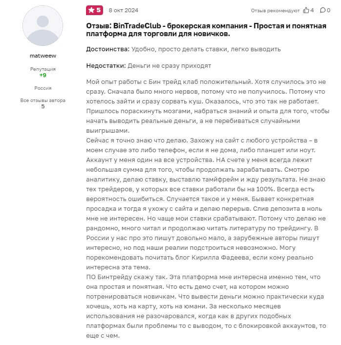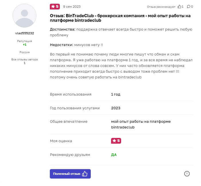 Положительные реальные отзывы о Bintrade из специализированных форумов