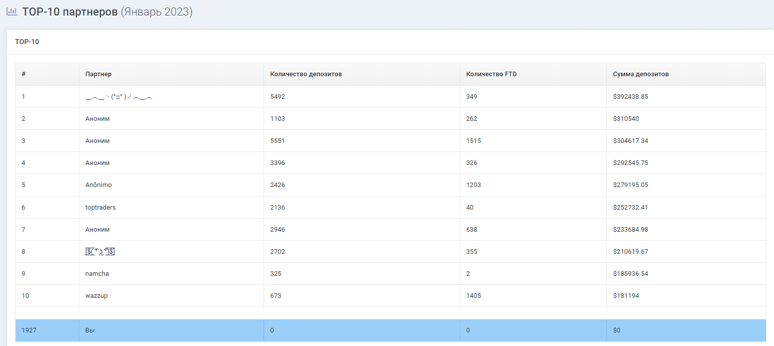 Основной критерий, по которому участнику рассчитываются вознаграждения – число сделавших депозит на свой баланс (FTD).