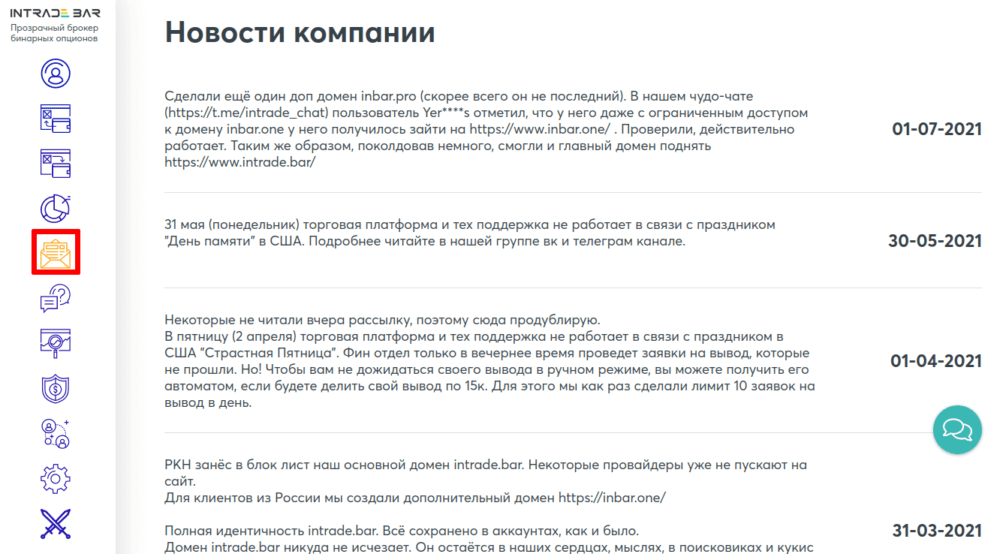 Интрейд Бар — один из самых заметных участников в своем сегменте финансового рынка. Предлагается ряд перспективных инструментов с перспективами заработка приличного профита при должном подходе к проведению операций. На текущий момент в списке доступных активов — наиболее ликвидные инструменты, благодаря чему извлекать профит можно из любой рыночной ситуации, стоит только грамотно подойти к построению собственной системы заключения сделок. Не последнюю роль в прибыльности каждого биржевого игрока играет умение обращаться с платформой Интрейд Бар, и в этом материале всем клиентам, существующим и потенциальным, предлагается внимательно ознакомиться как работать с имеющимся функционалом системы заключения сделок, торгуя бинарами и криптовалютой.