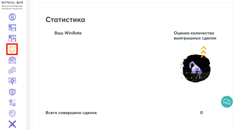 - Просмотр статистики по проводимой активности, в том числе и текущий WinRate, основной показатель успешности любого трейдера