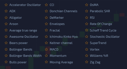 - добавление технических индикаторов. Предоставлен широкий набор самых распространенных и надежных инструментов. С их помощью можно создать и реализовать торговую систему любого уровня.