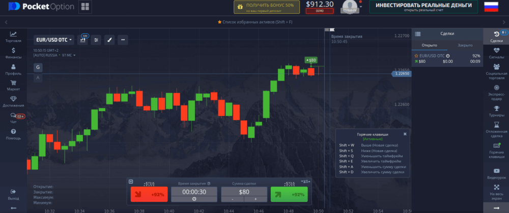 Платформа Покет Опшен — современная инновационная система торговли опционами, позволяющая зарабатывать как активными действиями при заключении контрактов, так и получая вознаграждения за активность на рынке. Все это позволяет оперативно пройти обучение азам трейдинга и начать извлекать профит от работы с бинарными контрактами с любым опытом работы. Простоту освоения профессии в этой компании подтверждают многочисленные реальные отзывы.