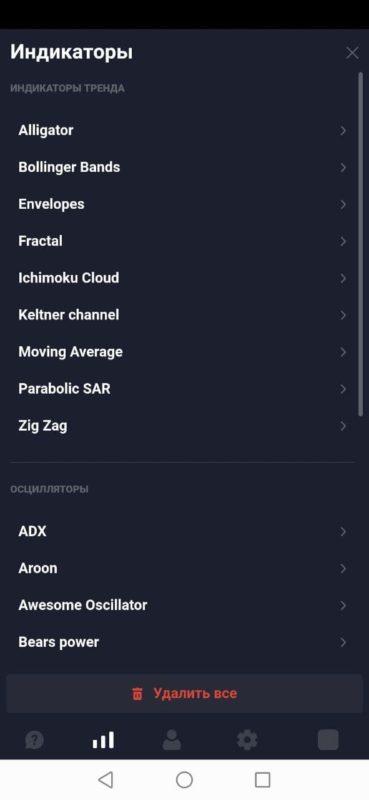Любителям технического анализа предлагается оценить широкий выбор инструментов в соответствующем разделе. Для работы доступны трендовые индикаторы и осцилляторы.