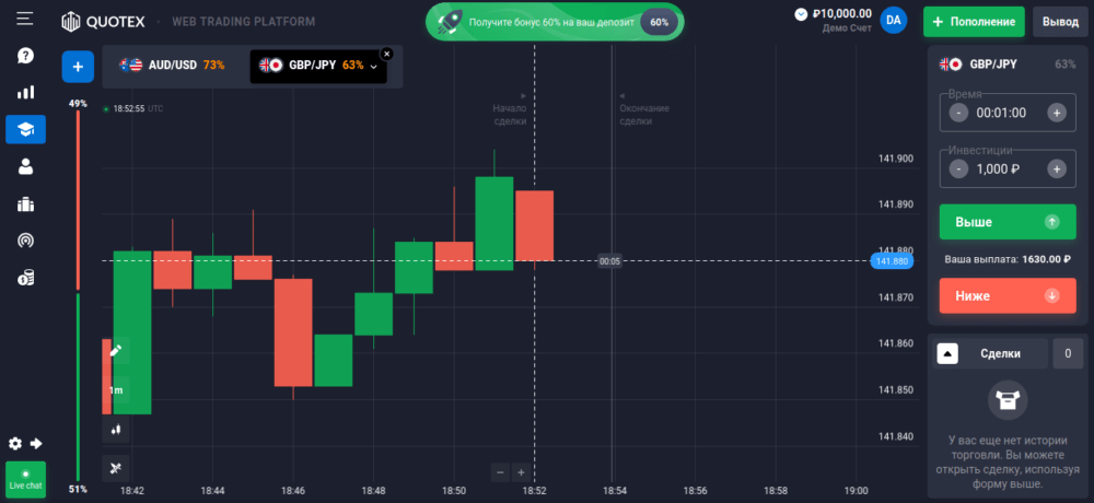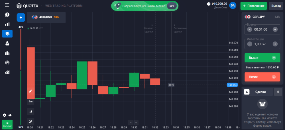 Quotex.io — брокер БО со всем необходимым инструментарием для обучения работе на площадках производных финансовых инструментов. Опытные трейдеры найдут здесь все необходимые средства для анализа рыночных тенденций в поиске самой прибыльной позиции. По этим причинам компанию можно рекомендовать для работы всем, кто предпочитает зарабатывать деятельностью на биржевых рынках.
