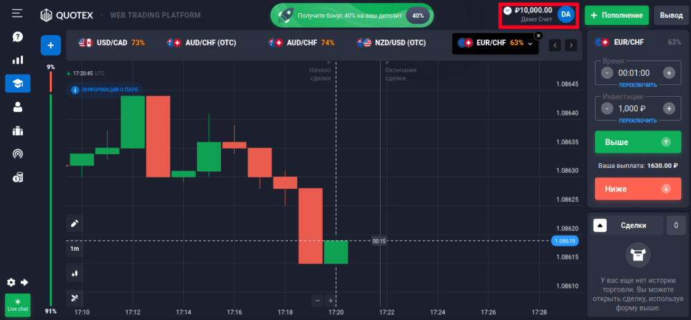 Торговать на демо счете у брокера Quotex