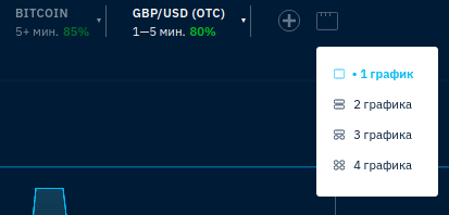 Далее располагаются кнопки для добавления второго актива в набор, а также выбора типа отображения — между 1,2,3 и 4-х графиковыми паттернами.