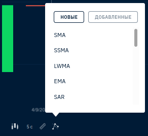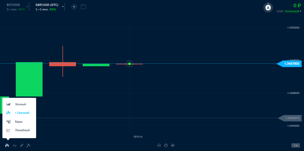 - Выбор типа между тиковым, свечным, барами и линейным