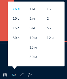 - Изменение интервал графика в пределах от 5 секунд до 12 часов