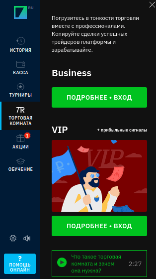 - Торговая комната. Раздел для тех, кто предпочитает следовать за лидерами, а не проводить анализ самостоятельно. Став участником данного проекта, трейдер получает право выбрать подходящий источник для копирования операций, а при выборе плана VIP дополнительно получать сигналы ко входу в рынок от аналитиков компании. Все это увеличивает шансы на прибыльную работу и в конечном итоге помогает получать дополнительный профит. Многие трейдеры указывают в своих реальных отзывах, что изучив все преимущества участия в программах типа Business или VIP, в итоге продолжили использовать функционал торговой комнаты в качестве основного источника данных для открытия сделок.