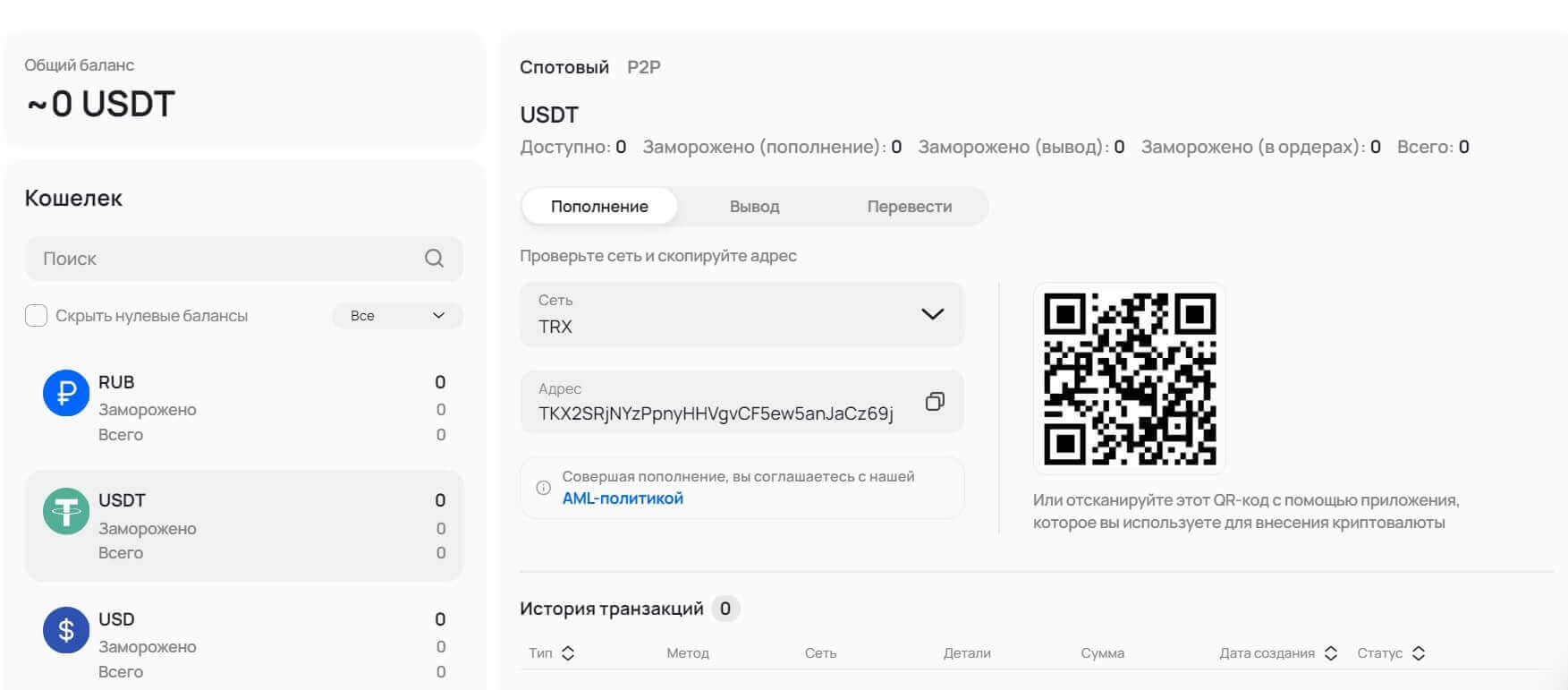 Затем нужно совершить вход в личный кабинет и внести необходимую сумму средств на ваш P2P-счет. Это можно сделать, перейдя в раздел кошелька и выбрав опцию перевода внутри платформы.
