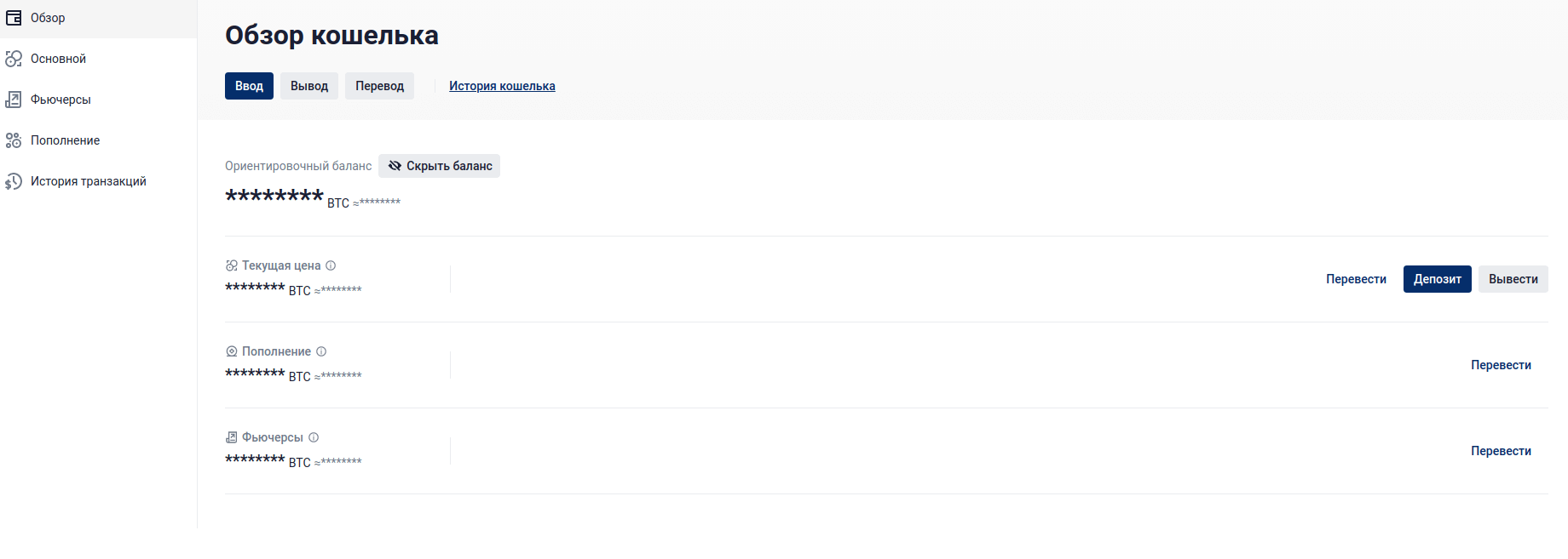 Каждый владелец аккаунта имеет три типа кошельков, используемых на каждой из предлагаемых биржевых секций: