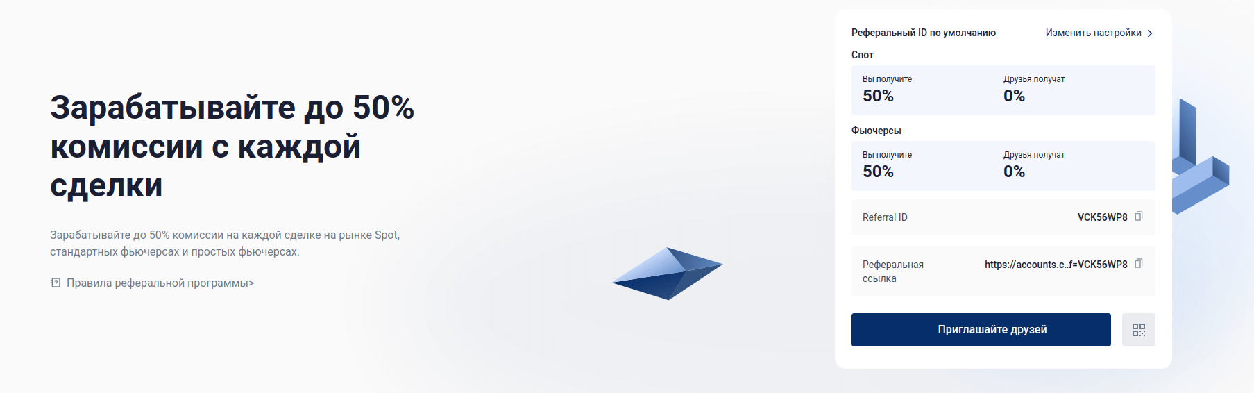 Используя Referral ID и ссылку для приглашения, участника программы доступен заработок до 50% от уплачиваемой рефералами комиссии. Этот способ получения дохода требует приложения определенных усилий на старте, но при наличии большого круга приглашенных с лихвой окупает потраченное время. А с учетом озвученного Binance отказа от обслуживания россиян, имеет высокие перспективы привлечения дополнительного профита, ведь поток новых регистрации здесь будет только увеличиваться.