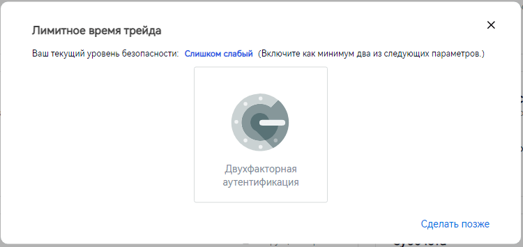 Один из неоспоримых плюсов платформы – постоянный контроль за безопасностью аккаунтов. В качестве примера ниже приведено предупреждение, появляющееся при входе в личный кабинет, с защитой доступа только по паролю. Предлагается настроить второй фактор аутентификации – через специальную программу.