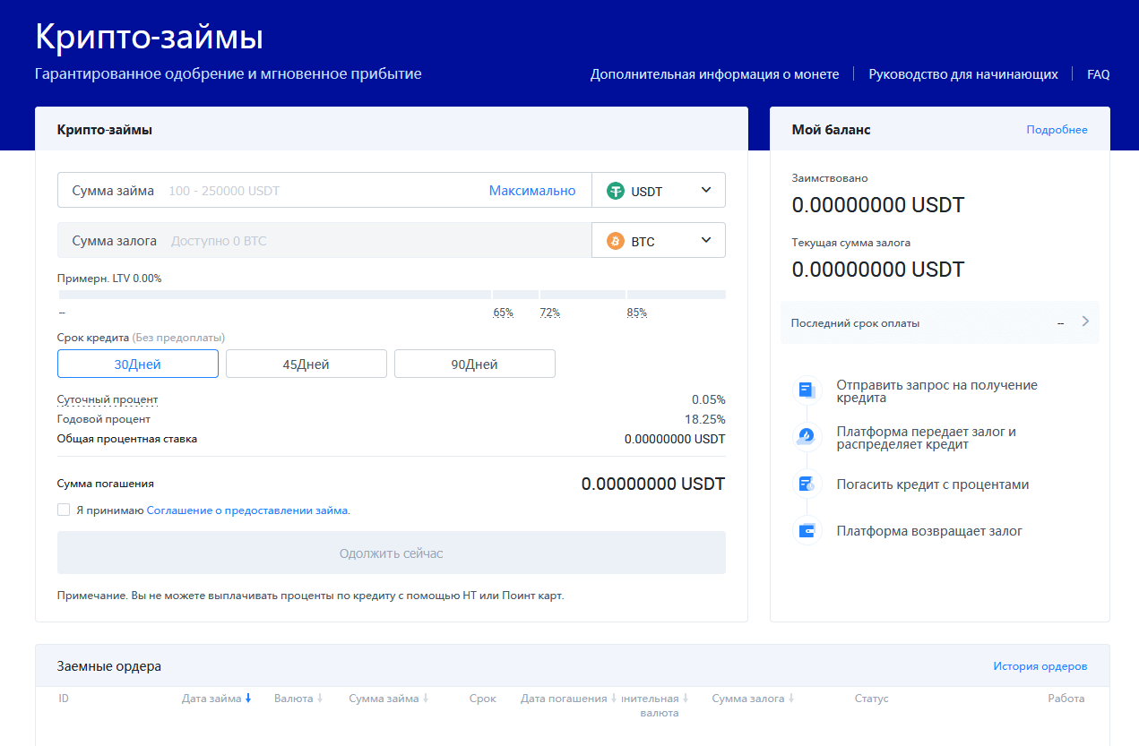 - Получение криптовалютных займов. Для заемщиков выстроена гибкая система выбора условий, что позволяет гарантировать возврат кредитору и разумно управлять кредитными токенами. А для кредиторов система замораживает гарантийное обеспечение, нивелируя риски невозврата взятых заемщиками обязательств.