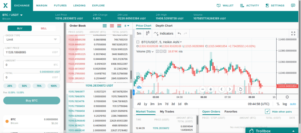 - Отдельный раздел для трейдинга децентрализованными токенами.