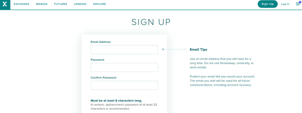 Для заведения аккаунта используется адрес электронной почты и уникальный, придуманный трейдером пароль длиной не менее 8 символов.