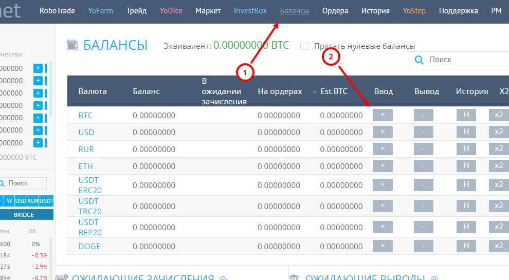 Работа с биржей YoBit: пополнение счета, как торговать, вывод средств