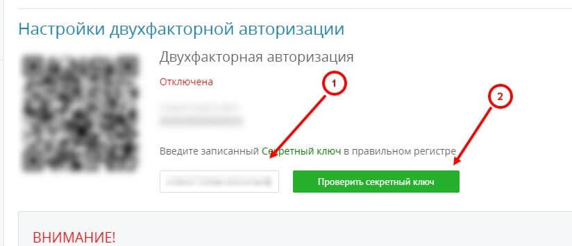 Затем нужно будет ввести секретный ключ и нажать на кнопку “Проверить секретный ключ”, который был указан в прошлом этапе настройки.