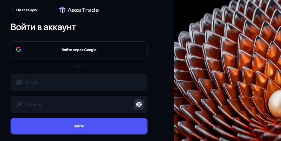 - Посетите официальный сайт АезаТрейд и найдите кнопку «Регистрация», которая располагается в верхнем правом углу главной страницы;