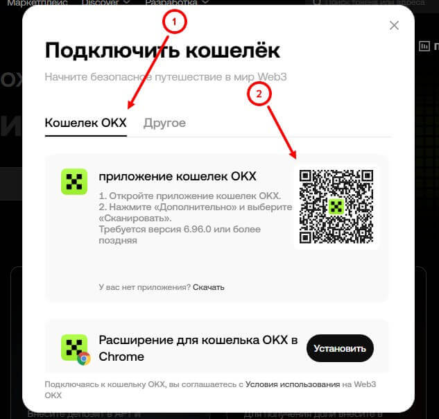 Выберите опцию “кошелек OKX”, если хотите использовать основной кошелек платформы. В этом случае вам будет предложено отсканировать QR-код, чтобы привязать ваш кошелек.