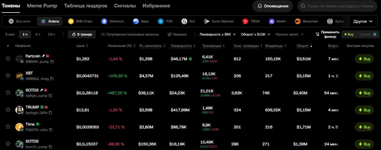 Выберите интересующий вас токен, кликнув по его названию. Это перенаправит вас на страницу токена, где доступна дополнительная информация, включая торговые пары, график цен, объем торгов и другие рыночные данные. Это поможет вам сделать обоснованный выбор перед покупкой или торговлей.