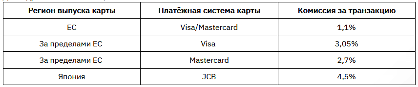 В зависимости от региона выпуска «пластика» могут взиматься дополнительные комиссии. Их размер указан на изображении ниже.