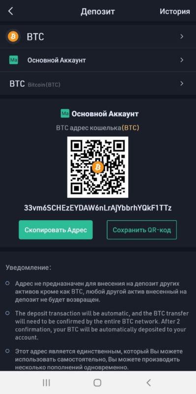И завершаем перевод по тем же шагам и требованиям, что и для веб-версии личного кабинета. Остается только дождаться поступления криптомонет на счет.