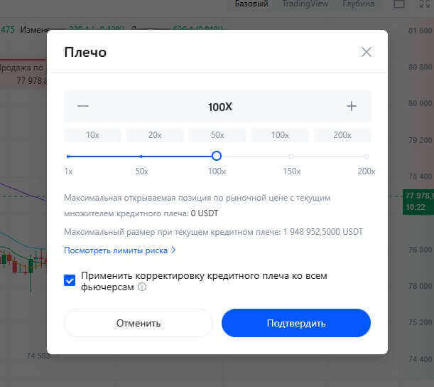 Выберите тип ордера. На MEXC доступны различные типы ордеров, включая Market (по рыночной цене) и Limit (с ограничением по цене). Затем, определите уровень кредитного плеча, который может увеличивать как ваш потенциальный доход, так и убытки. Будьте осторожны при выборе плеча, так как риск увеличивается с его ростом.