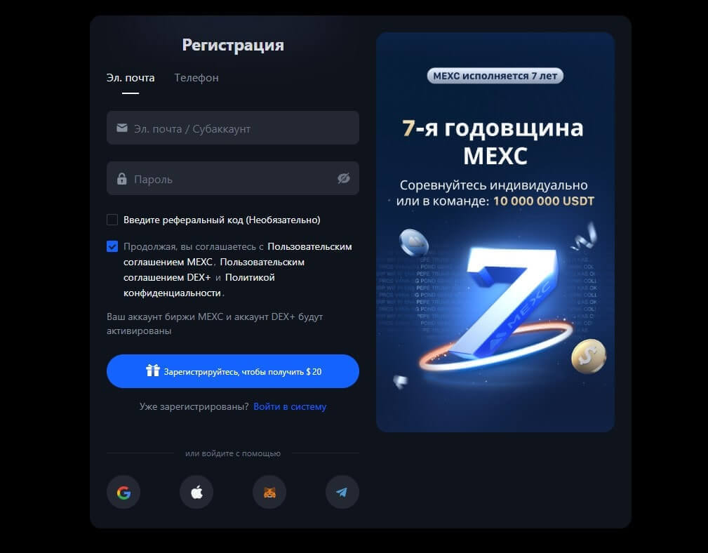 Зарегистрироваться на бирже Mexc прямо сейчас