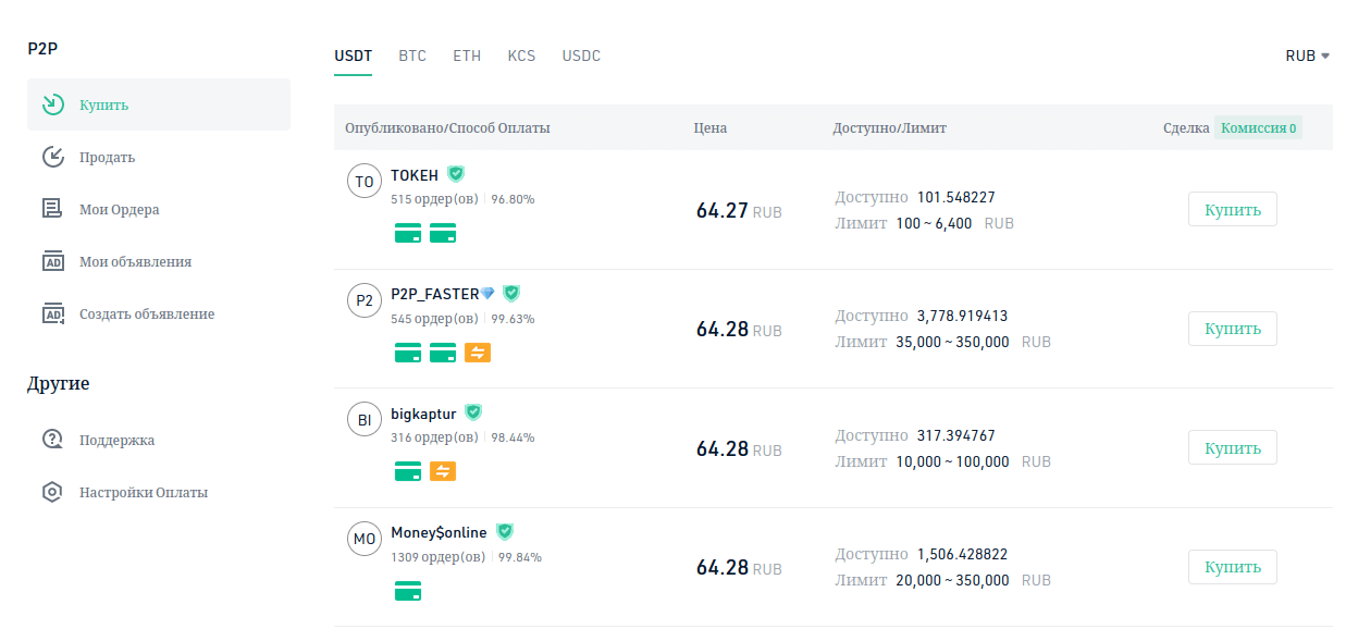 Во втором случае речь идет о приобретении токенов через соответствующий интерфейс Kucoin, площадку P2P или сторонние сервисы. Далее рассмотрим каждый способ по отдельности.