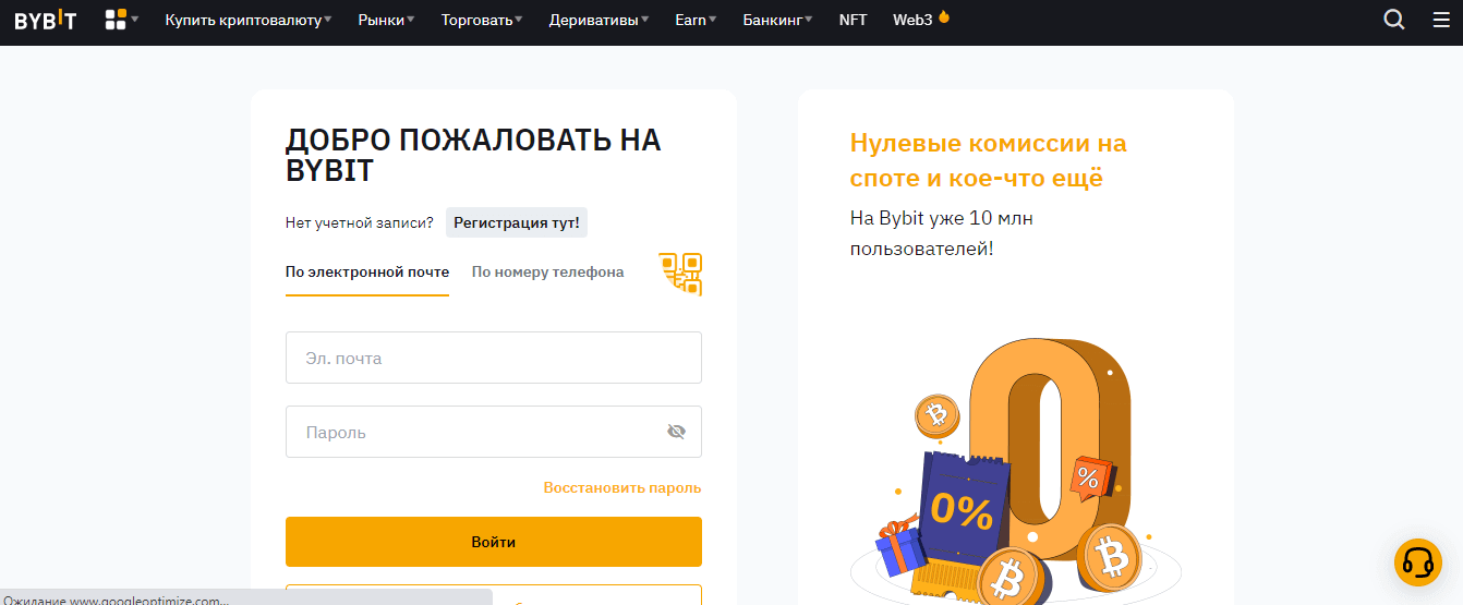 - Войти в личный аккаунт ByBit, введя логин и пароль;