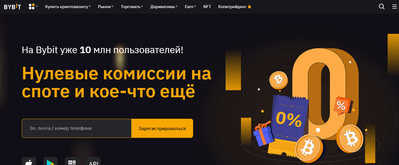 - Открыть главную страницу ByBit по нашей ссылке; bybit.com