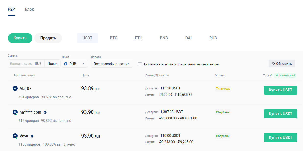 - Выбрав подходящее предложение на площадке прямого обмена P2P