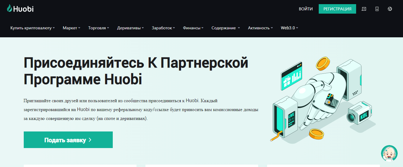 Зарегистрироваться в партнерке Huobi
