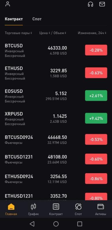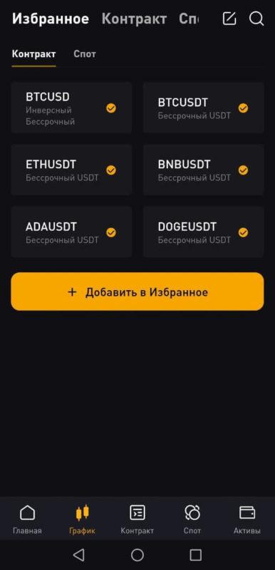 Список показываемых инструментов регулируется во вкладках «Контракт» и «Спот», соответственно. В процессе ежедневной деятельности каждый трейдер выбирает для себя определенный набор активов, работа с которыми наиболее удобна и понятна для него.