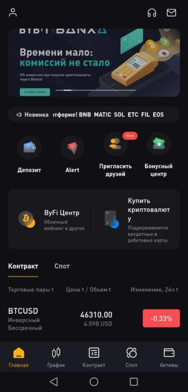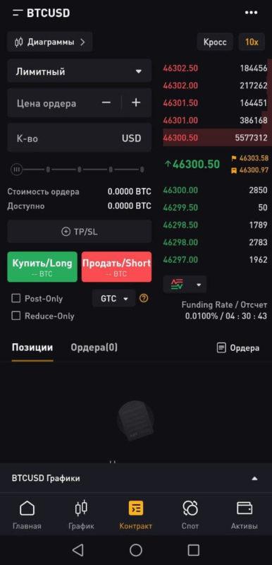 Скачивание приложения Bybit осуществляется бесплатно из официального магазина используемой на гаджете платформы. Далее рассмотрим софт на примере для Android, для iOS и для Windows интерфейс полностью идентичен.