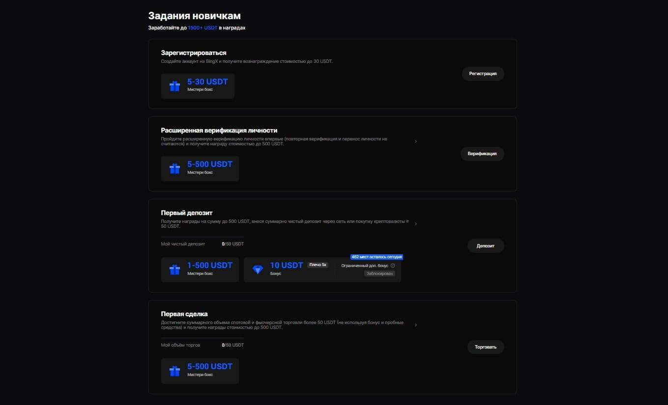 Также пользователи могут получать бонусы за верификацию личности, первый депозит и первую сделку (мистери бокс с суммой каждого от 5 до 500 USDT). Также при совершении первого депозита дается бонус в 10 USDT для фьючерсных сделок с кредитным плечом 5x. Таким образом, реферальный код на BingX становится не просто привлекательным предложением, но и важным инструментом для облегчения входа в мир криптовалютной торговли для новых участников. Это приводит к росту комьюнити платформы и стимулирует активность на рынке, делая его более живым и динамичным.
