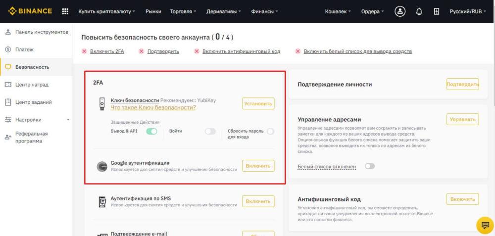 Система предложит выбрать подходящие способы повышения безопасности. Лучше подключить 2FA авторизацию и параллельно использовать Google Authenticator.