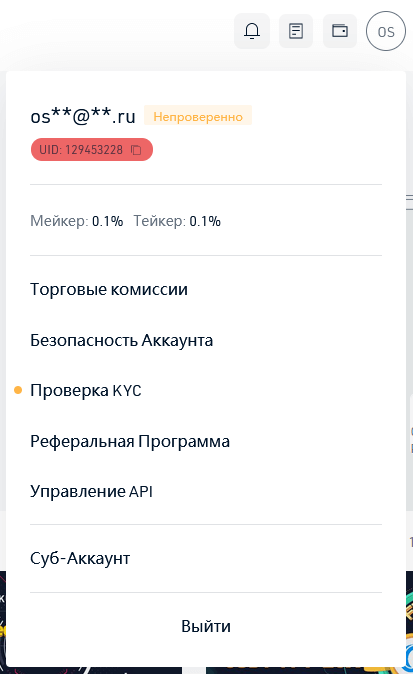 В следующей части платформы осуществляется управление личными данными пользователя. Один из самых важных пунктов – прохождение проверки KYC, или верификации. По умолчанию все аккаунты считаются не прошедшими данную проверку, о чем свидетельствует соответствующая надпись.