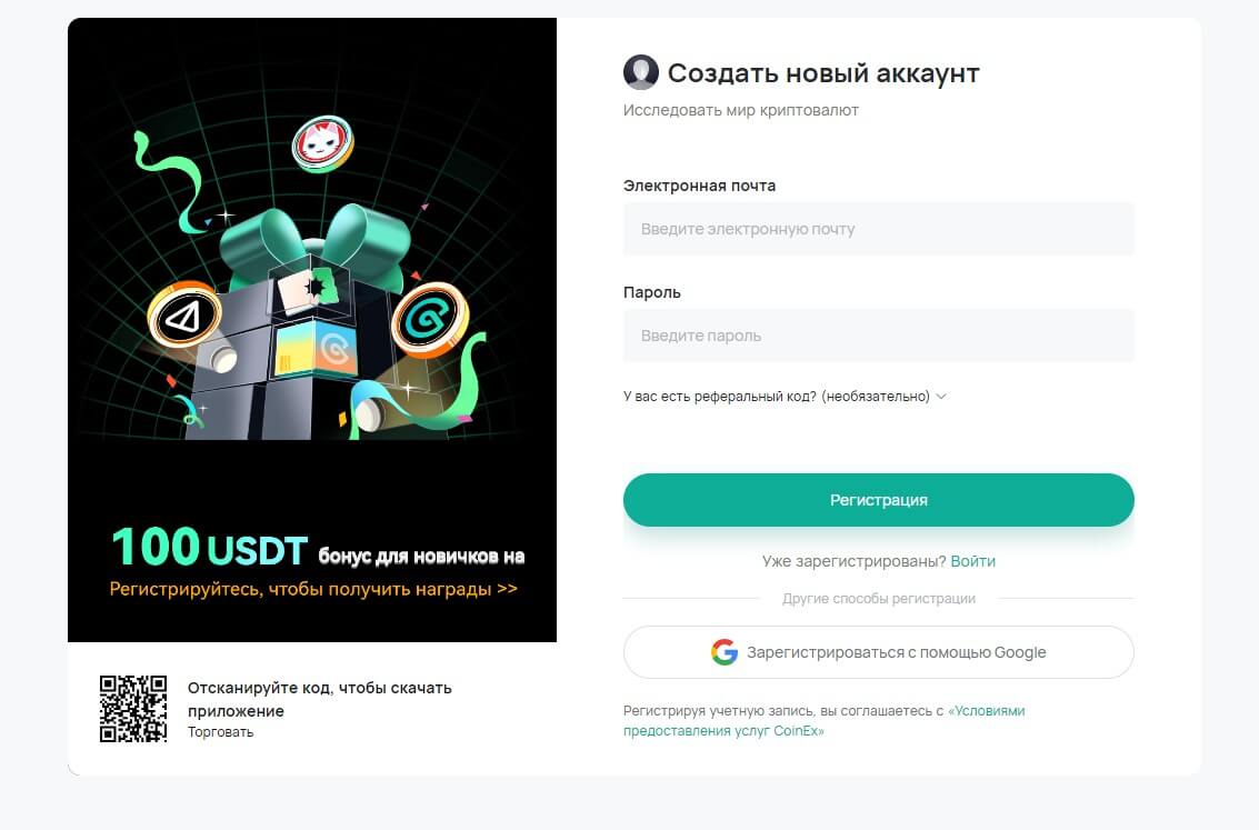 Чтобы пройти процедуру по созданию аккаунта на криптовалютной бирже CoinEx, необходимо сделать следующее: