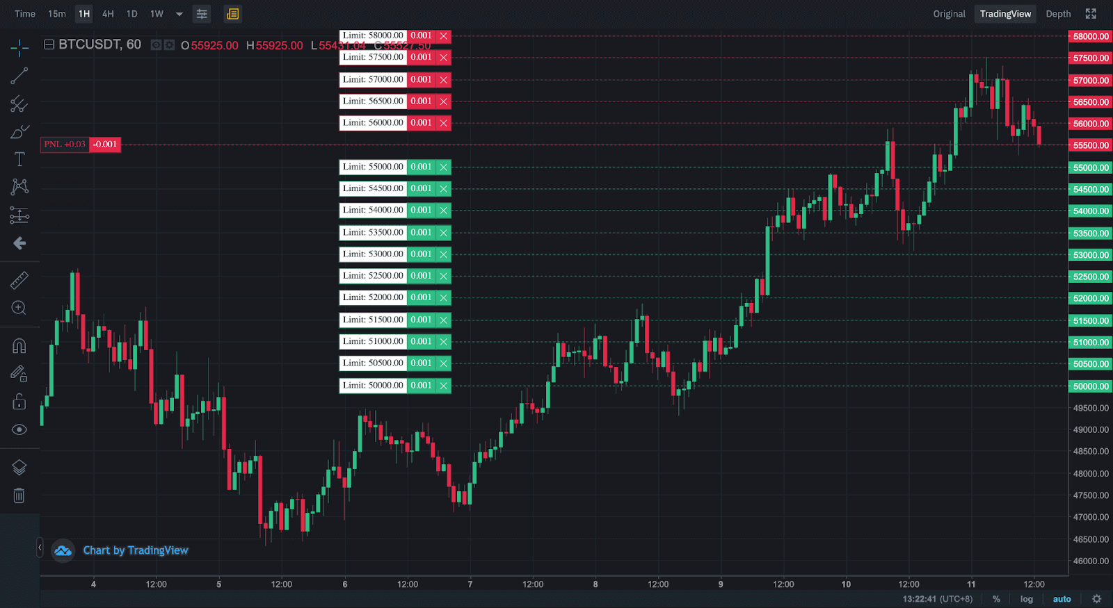 Не меньшую пользу торговля криптовалютой по принципу «лестницы» принесет и при наличии боковика, где пределы начала и окончания волатильности четко идентифицируемы. Так как дельту между моментами открытия позиций можно выставить любую, получать прибыль получится даже при небольших ценовых изменениях.