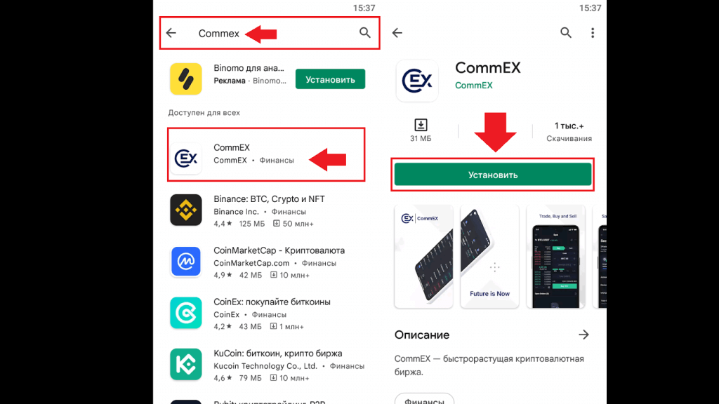 Чтобы скачать приложение CommEx на мобильный телефон, не нужно скачивать apk файл. Для этого посетите магазин приложений вашего устройства (App Store на айфон или Google Play для Android), введите «CommEx» в поисковую строку, выберите соответствующее приложение и нажмите «Установить».